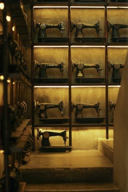 Periodically‚ wipe down the exterior of the machine with a damp cloth. Avoid harsh chemicals or abrasive cleaners. Never oil the machine excessively; a few drops in the designated oiling points (refer to the manual’s diagram) are sufficient. Consistent cleaning prevents thread buildup and ensures accurate stitching. Ignoring maintenance can lead to malfunctions and reduced performance.
