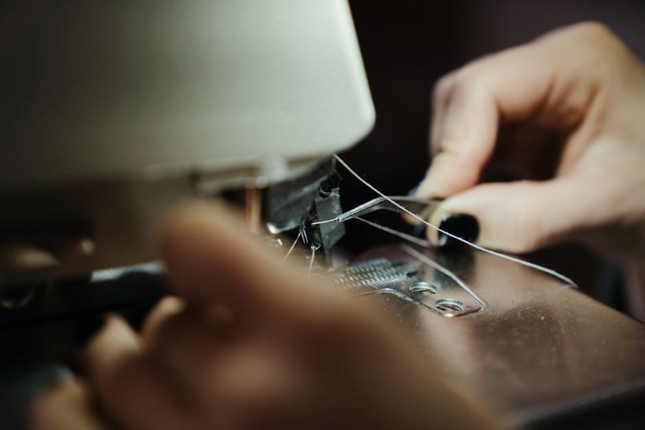 If the thread doesn’t go through on the first attempt‚ try again‚ ensuring the thread is securely positioned in the guide. This feature is particularly helpful for those with visual impairments or dexterity challenges. Regularly check the threader mechanism for lint or debris to maintain optimal performance. Mastering this feature saves time and enhances your sewing experience.